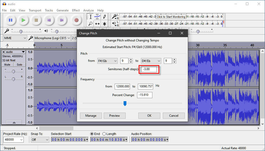 Do File | Export Audio... to save the modified file to a WAV file. Be sure to