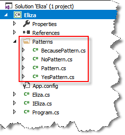 Eliza.Initialize() to have to know about the internals of the three patterns