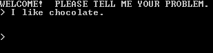 Tweaking the pattern selection logicIf you run Eliza and tell give it the input "I like chocolate.", it responds with a null response.