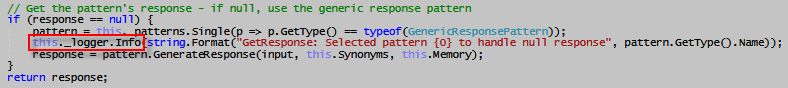 Giving Eliza an ILoggerIn order for Eliza to use an ILogger, we need to give it one. The best way to do this is pass it an ILogger in its constructor.