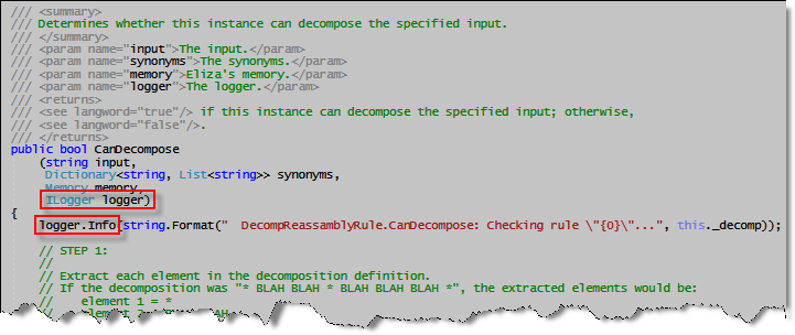 Using the loggerIf you search the code of the Eliza project for the string: